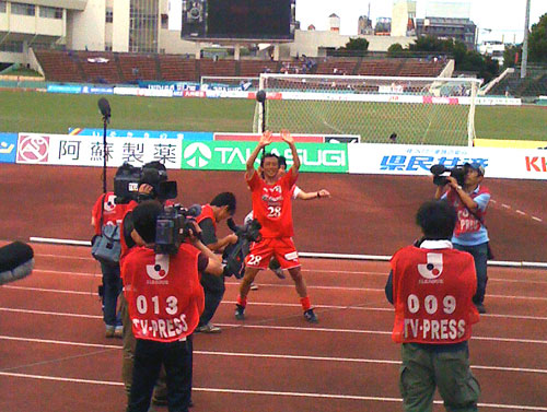 出身地ではない熊本でサッカー文化発展の担い手となる手段としてこの職業を選んだということのようです。そんな彼と彼を支援してくれる企業に感謝です。