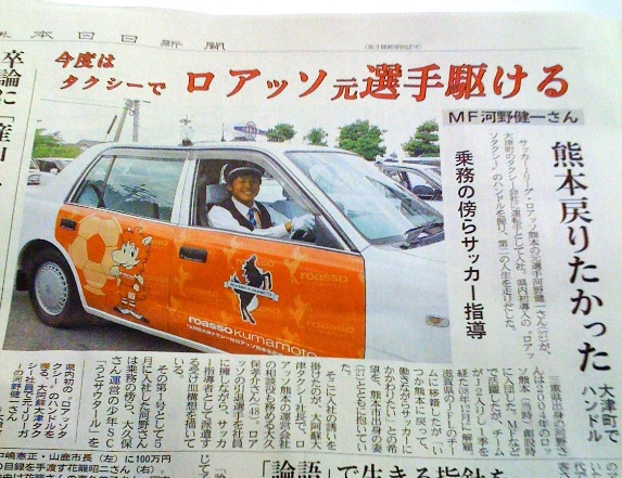 2008年にはロアッソの14番を背負っていたカワノくんがタクシードライバーに大変身♪