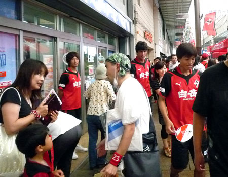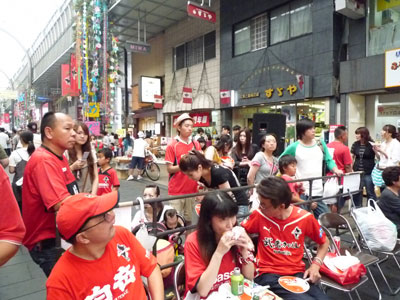 ちなみに一番手前の女性も実はローカルTVでよく見る方です。自分はちと違うんですが、女性がロアッソの試合を見に行くとこんなハマり方するパターンが多いよね、という王道を行ってらっしゃいます。