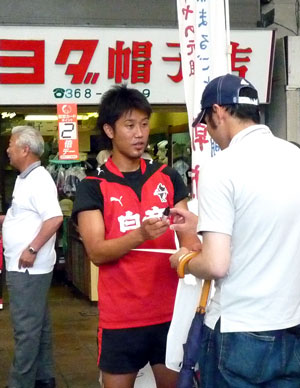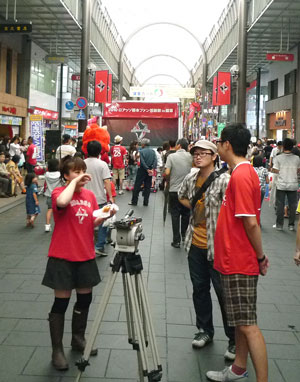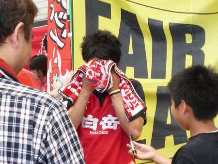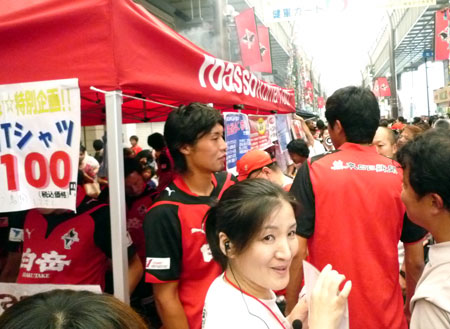 実はこのファン感は熊本のメディアが勢揃いするほどの注目を集めたものらしく、あっちこっちでTV局のクルーと遭遇。何でもいいからロアッソ熊本と健軍商店街ガンガン放送してね!と心で叫びつつ、カオスの中を泳ぎ続けました~。