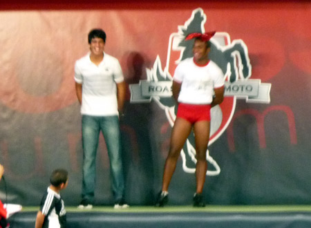 中央の方がリーダーのヨッシー。昨年の土俵入りに続いてのサプライズ♪
