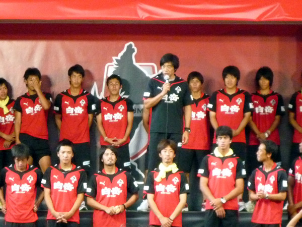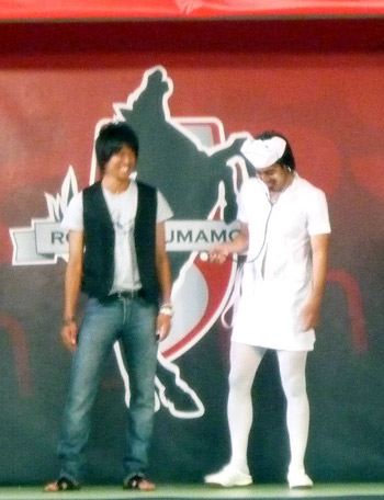 総括を先に言っちゃうと、遠目に私服だともうすでにそれが赤馬衆の誰だか全然わからない。大衆に溶け込みたいJリーガーは、ふだん目立ちまくる赤装束と私服の落差が激しいロアッソにおいでませ(^_^)v