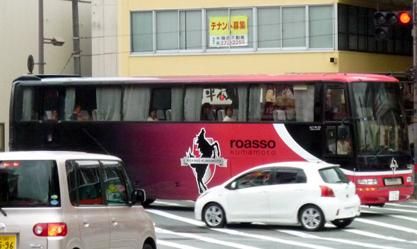 "ファン感2次会"の前に所用で回るために四つ角バス停にいたら、選手スタッフ一同様を乗せたロアッソバスがやってきましたよー♪