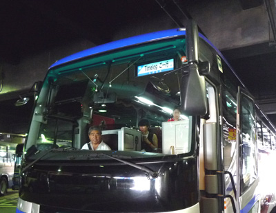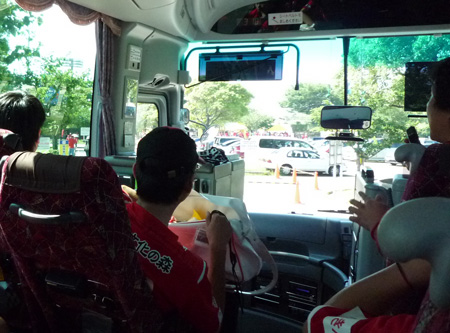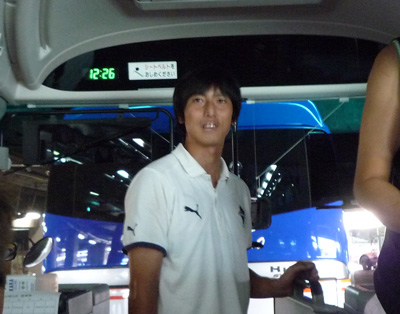 このバスで参ります。健軍から出発して交通センターで全員集合。