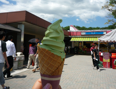 すでに陽射しが刺す勢い。八女茶ソフトが美味でした。私たち以外にも赤い人たちが三々五々いらっしゃってお互いニヤッと笑いあってしまった(^_^;)