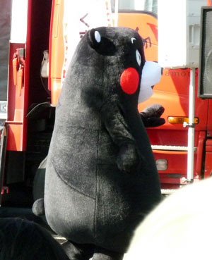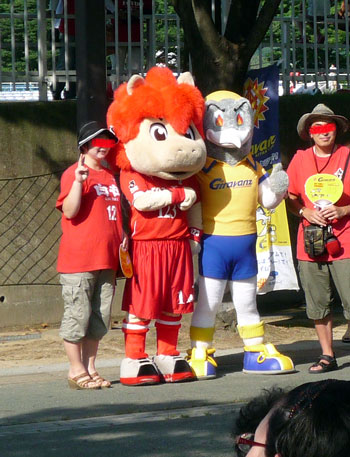 マスコット集合。トレーラーの横で記念撮影に応じていた面々。