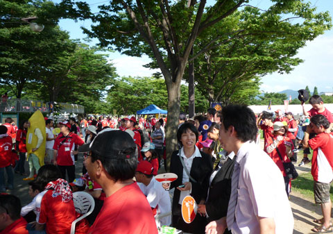 まだまだ西日が強いけど、久しぶりの赤馬衆応援にウキウキワクワクが止まらなくて、実際燃えまくりましたよーo(^▽^)o