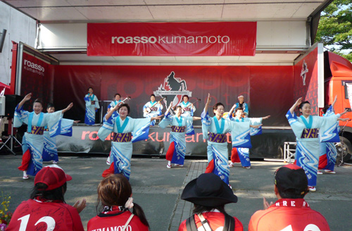 元気いっぱい! なぜか横でクマモンも一緒に踊っておりました。