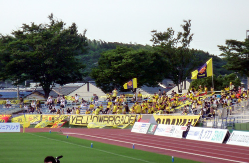 ここもゴール裏ではなくバクスタよりに陣取っておられました。福岡のチームってバクスタでホームゲーム応援がデフォなのかしらん。