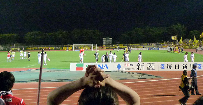 その後の展開は実は本城スタのゴール裏からは、ほとんど立体感を伴って観ることはできませんでした。もうただひたすら相手ゴールに攻め上がる赤馬衆の後押しに声を枯らしているばかり。