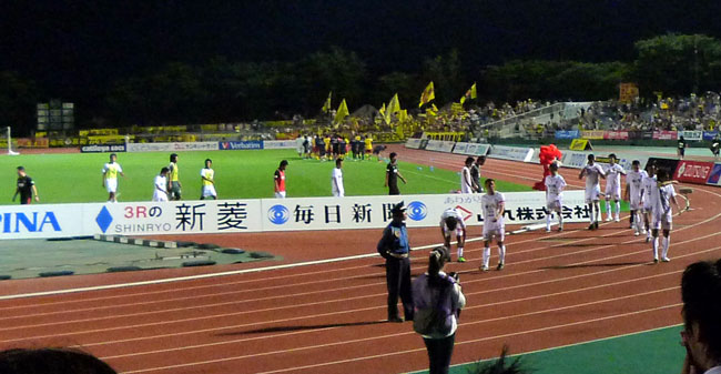 北九州の選手紹介で、カワバタくん・セキくん・コモくんの名前が告げられたときは案の定高らかにブーイングと拍手の入り交じった不思議なエールが送られていましたよね。自分がどっちだったか実は全然覚えていません。きっと隣の人と同じ雄叫びを上げてたんでしょうなー。