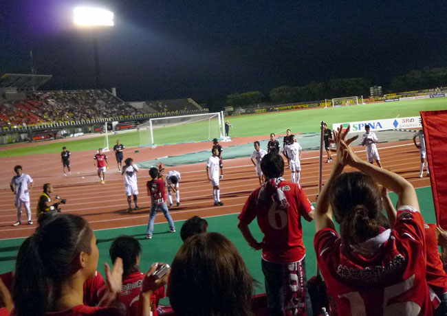その代わりと言っちゃなんですが、あのシミュレーションまがいのプレーに掠われたPKの時はこっち向きだったんで、そらもうもんのすごいブーイング。その大半は、たぶん選手というよりジャッジを下した主審に浴びせられていたものだと思います。