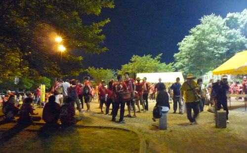 帰り難い気持ちを抱きしめて喫煙コーナーにたむろするロアッソサポの皆さん。