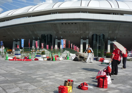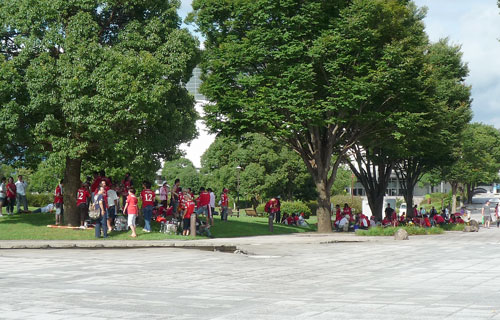 みんなどこへ?と思ったら入場開始までこのへんで日除け中。