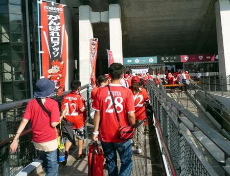 入場開始。久しぶりに渡る北ゲート。久しぶりの真っ赤な行列。