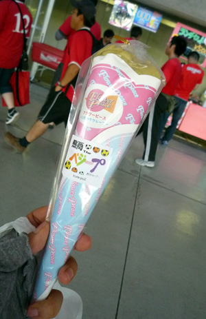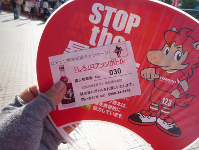 本日からスタジアム販売の白岳しろ「ロアッソボトル」もここでゲット。整理券もらって試合後に受け取りですが、抽選は見事ハズレました。