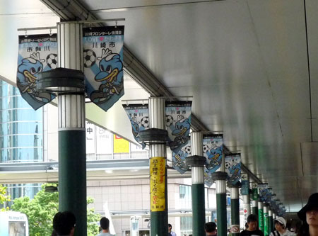 定時に待ち合わせの駅へ行くと、駅前のプロムナードはフロンターレ一色!カッコイイなあ。
