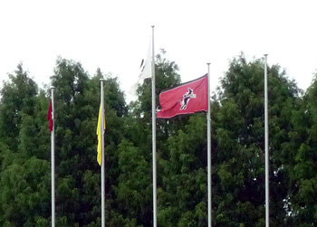 この日はあまり風がなく掲揚されたフラッグ類も大人しかった中で、なぜかいつ見てもロアッソの旗だけがはためいていました。これは何のフラグなんだろう?と、ちょっとだけウズウズしてたのは私だけでしょうか。