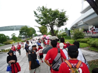 台風のせいか曇天を見上げると遠方でけっこうな雨が降っているのがわかります。そんな空模様の中、今日は優先入場もなく全員が一般入場です。