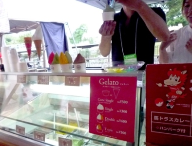 ジェラート食べ終えてゴール裏に戻ると太鼓叩く馬に遭遇(^o^)