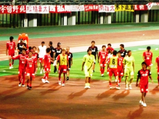 この試合も、結果としてマツハシくんが決めた虎の子の2点を守りきる形となりました。が。あとでニュース映像見たんですが……愛媛FCのGKくんDFくん……あの守備はどうなんでしょうか(^_^;)。愛媛サポさんはどう思われたのかなあと。