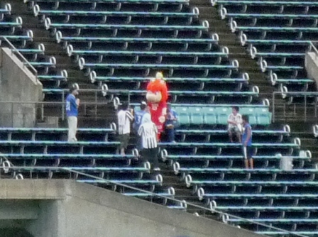 そしてこの格好のまままたしてもアウェーサポさんの応援席へ。
