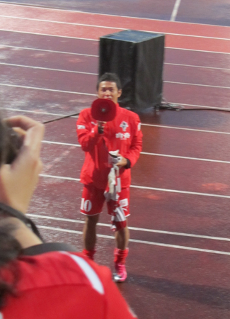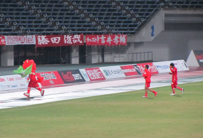 福岡戦がいつもの試合と違うのは、試合終了後のアフターゲームショーの延々と続くテンションの高さでした。