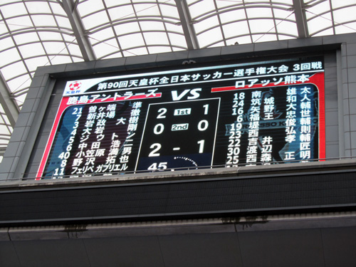 あとで聞いたらアントラーズのHPでは試合のたびにネット中継があるらしく、熊本ではそれを聞いて応援していた方々がたくさんいらっしゃったそうです。一緒に戦っていたんですねー! 嬉しいし心強いことです(^^)/