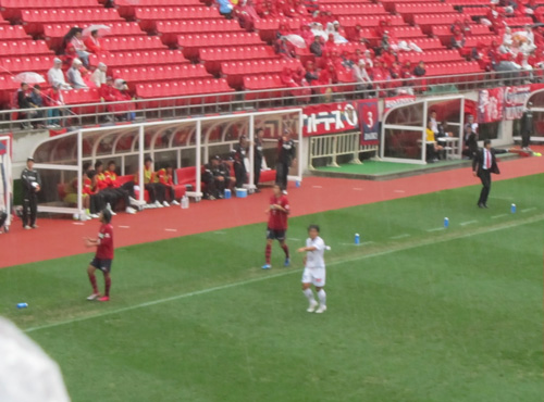 試合の方は、前半アディショナルタイムに、CKからゴール前を縦も横も上も制した岩政選手のヘッド一発で追い越されました(>_<)。