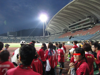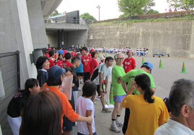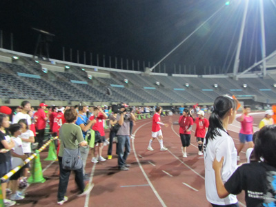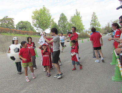 リレーの最後は参加グループ全員でKKWING内のピッチを囲むトラックを走ります。これが楽しみで最後までがんばった~♪