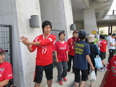 実際、ロアッソ熊本の選手も何人か自主トレに来てこのイベントに遭遇したようで、カトケンくんはランナー溜まりの中を歩いてきたので「走るんですか?」と突っ込まれて「自主トレです……」と笑いながら通って行きました。(余談ですが、ちゃんと彼だと認識しながら最後まで「オカムラくん」と呼ばわってしまってゴメンナサーイ!m(_ _)m S子おねーさまに言われて初めて気づいたマヌケです……がくー)