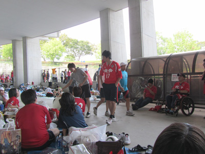ロアッソの応援と同じくらい団結力発揮した皆々様です。