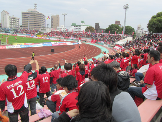 着席観戦の人の中にはロアッソの選手がゴールしても手も叩かない人がけっこういるんですねえ。ニコニコしてるから嬉しくないはずはないんだけどこの温度差はちょっと目ウロコだった。