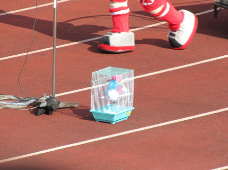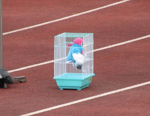 あら。後半の試合中ずっとそこにいたのねカゴの鳥!