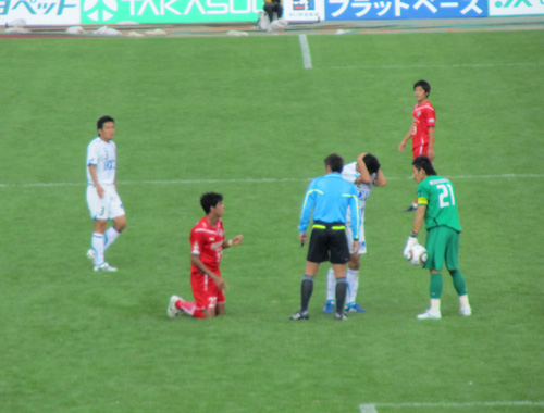 何が驚きって、ミナミくんがハーフウェーラインにいたこと。思わず「蹴るのか?!」と思ってしまった(^o^)