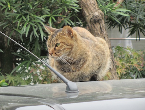 オマケ。駐車場の車の屋根で悠然とくつろいでいたニャンコ。