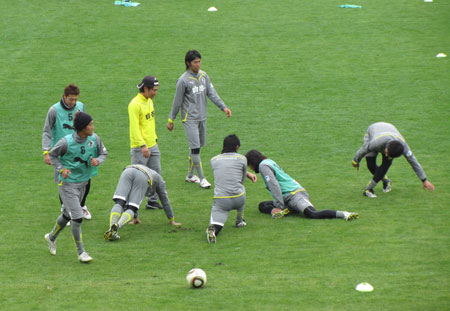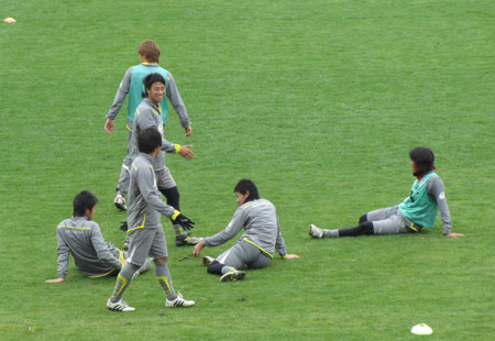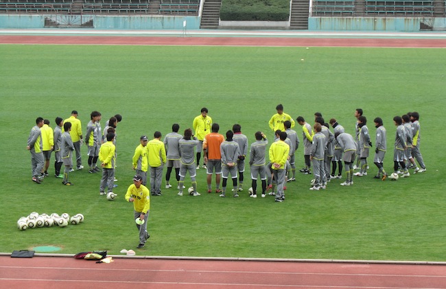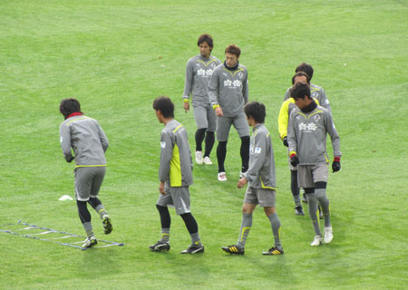 練習後の赤馬衆は、なぜかファンの行列に気もそぞろな様子でとっととお帰りに。みんな高校サッカー決勝戦を見にKKWINGに走ってったようでした。