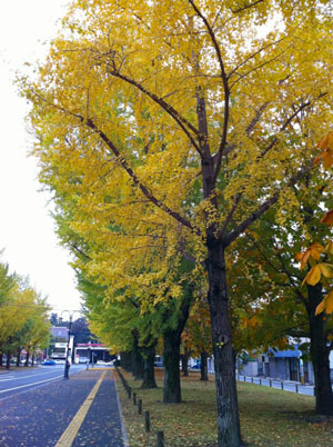 県庁東側の並木も色づいてました。いろいろと思いながらの一枚です。
