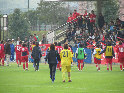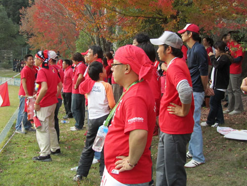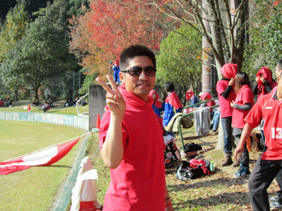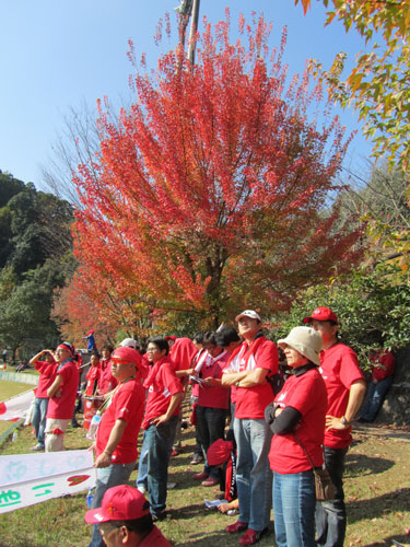 真っ赤なサポーターの頭上でも真っ赤に染まった紅葉が後押ししてくれていました。