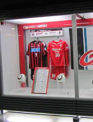 ドームの歴史を物語るようなプチミュージアム。ちなみに写真はこの日の対戦をホームユニ展示でお知らせ。…………うーむ。10番……(-"-)。