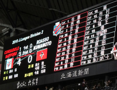 印象的だったのは、ロアッソ15番の名前がアナウンスされた時の札幌サポさんの暖かい拍手。イチくん生まれ故郷ってありがたいね♪ 後で聞いたらタカギ監督も拍手されてたそうです。そうか選手として所属してたんだった!