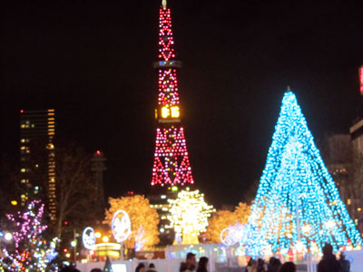 大通公園でイルミネーションがこれでもかと。