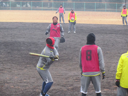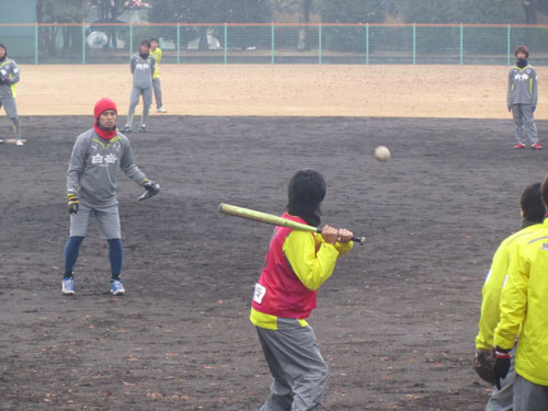 というわけで、本日は卒団組を含めた全体練習ラスト。昨年と同じく「ロアッソ野球軍」が出現。練習というよりリラックスタイム。