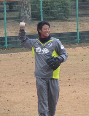 最初は飛んできたソフトボールを足で止めようとしてましたけども。
