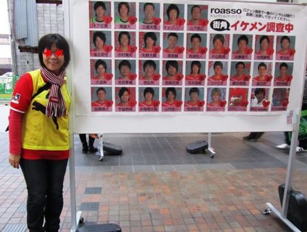 警備担当の立ち位置の真横に「ロアッソ熊本イケメン調査」ボード。こういうのは明るくノリで呼び込みやらないと誰も集まってくれません。というわけで。