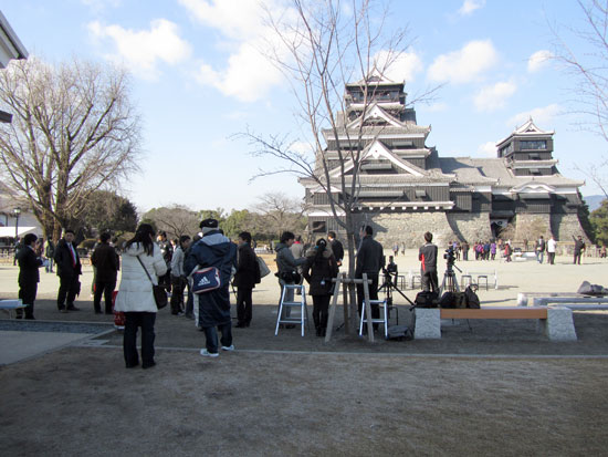 まずは吐く息も白い午前中の熊本城天守閣下。