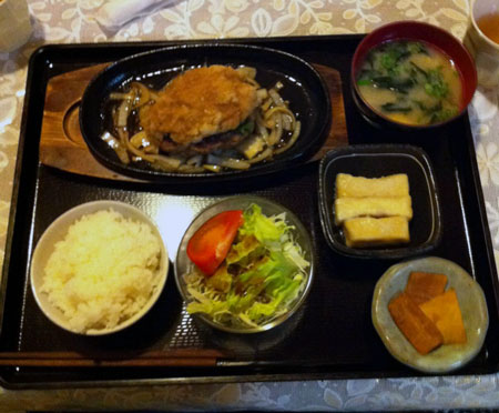 ボリュームすごいのに食べるとあっさりピリ辛「和風ハンバーグ定食」ごちそうさまでした♪♪m(_ _)m