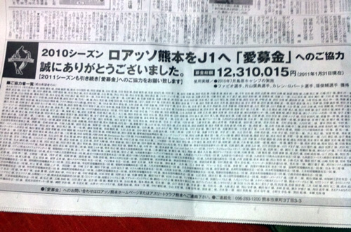 お金が動くというと眉をひそめる向きもありましょうが、サッカーを中心として経済活動が活発になることこそ熊本県の向上や発展にも繋がるし、熊本を冠するプロスポーツチームを活かすためにはクラブそのものに磨きをかけなきゃ輝かないわけで、そのための「愛慕金」だと、私は勝手に思っております(^_^)v