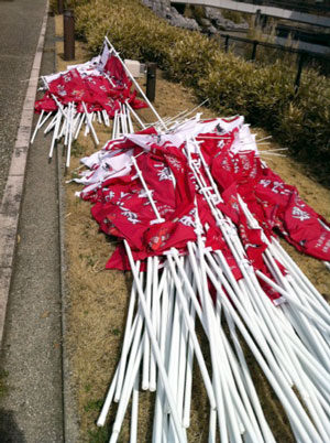 オリエンテーリングの目印よろしく、この応援のぼりをKKWINGの周辺に立てます。