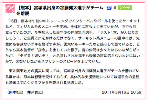 お母様とお祖母様の安否がまだ不明だと聞くカトケンくんは、いまチームにいません。ご実家に帰ったそうです。